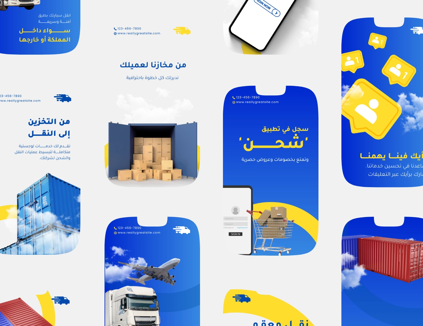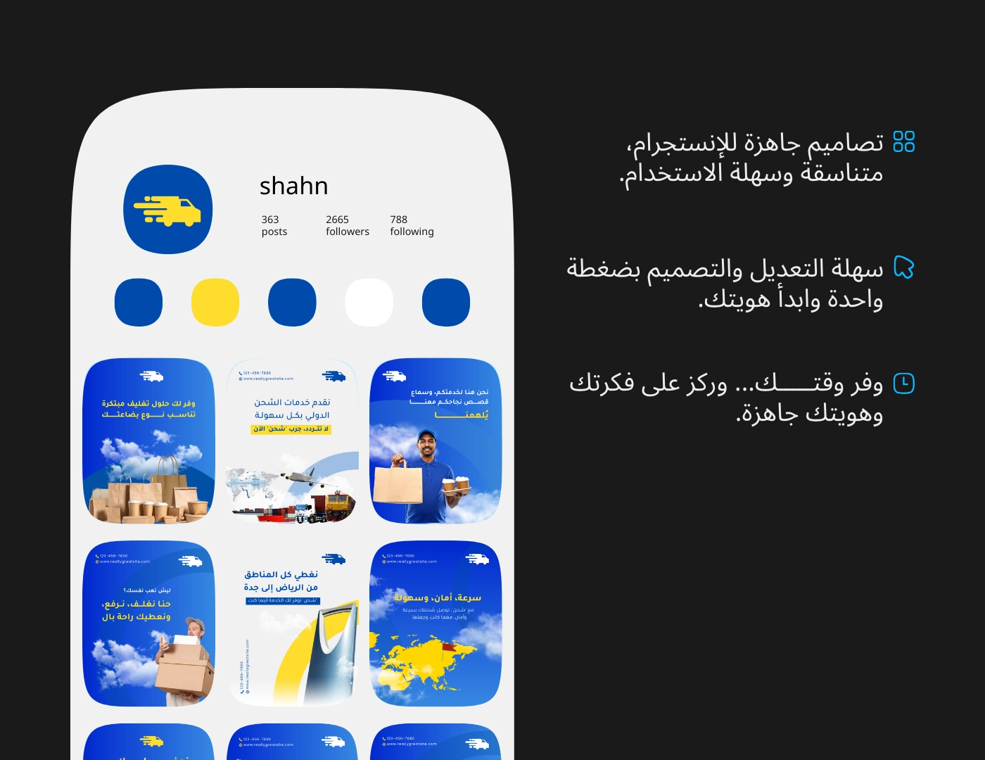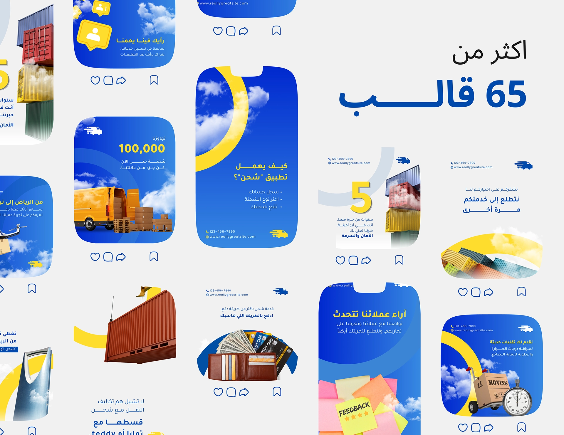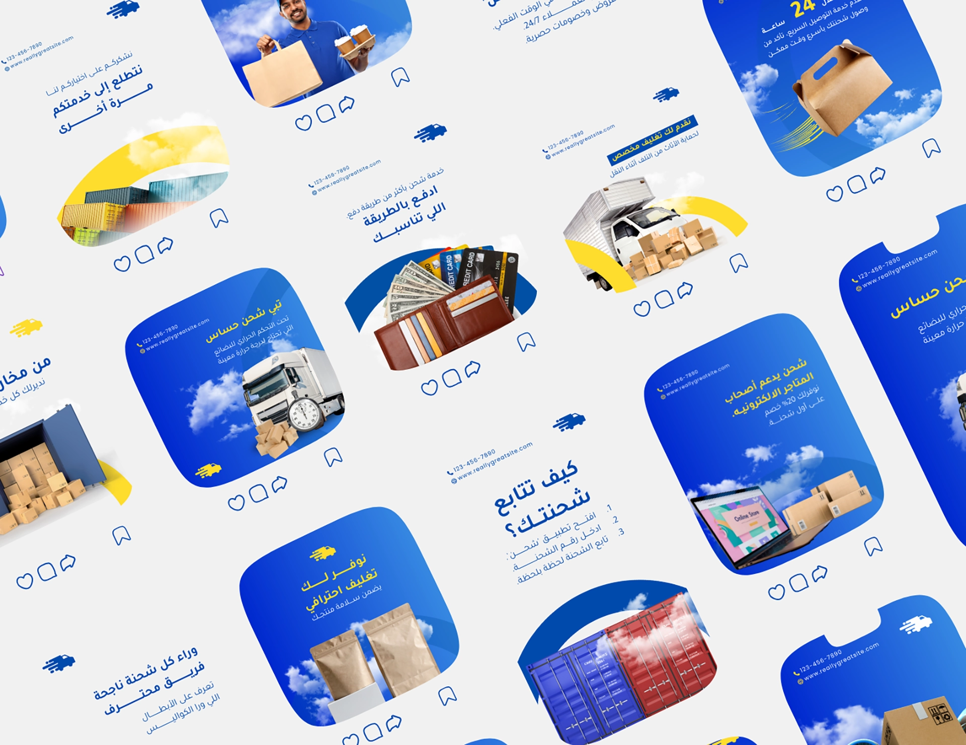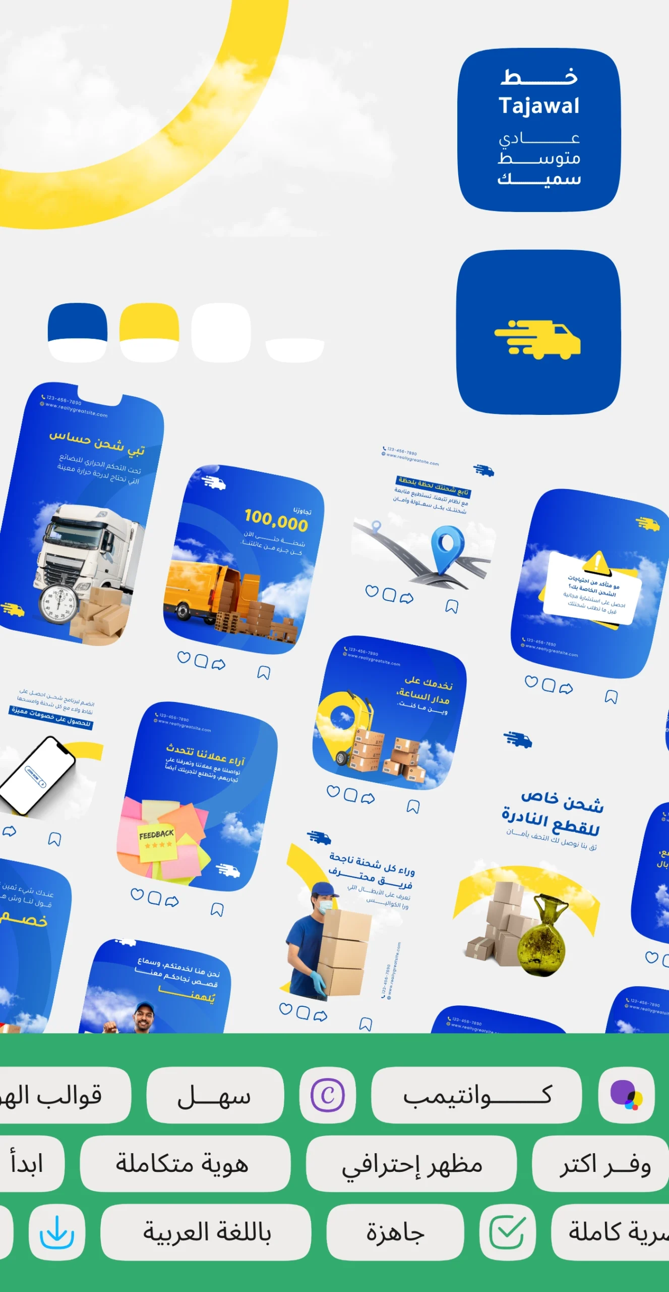 حزمة Quantemp لقوالب سوشيال ميديا للشحن والخدمات اللوجستية مصممة مخصوص علشان تساعدك