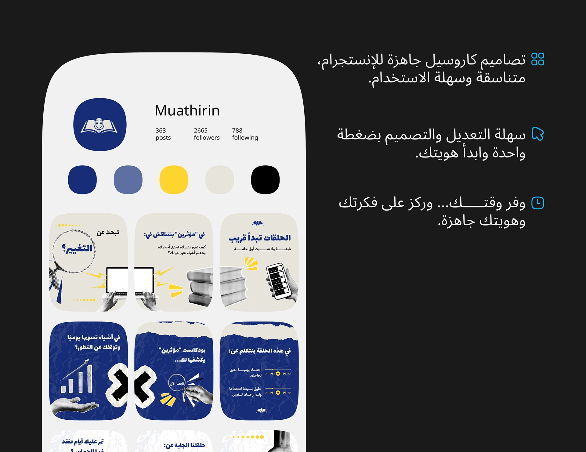 مصممة لمساعدة صناع المحتوى والمؤثرين في عرض حلقاتهم وأفكارهم بشكل جذّاب واحترافي، مع دعوة للتفاعل من غير مصمم ولا وقت ضايع.
