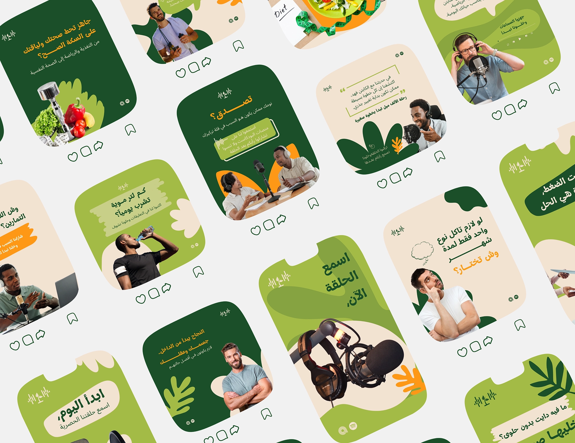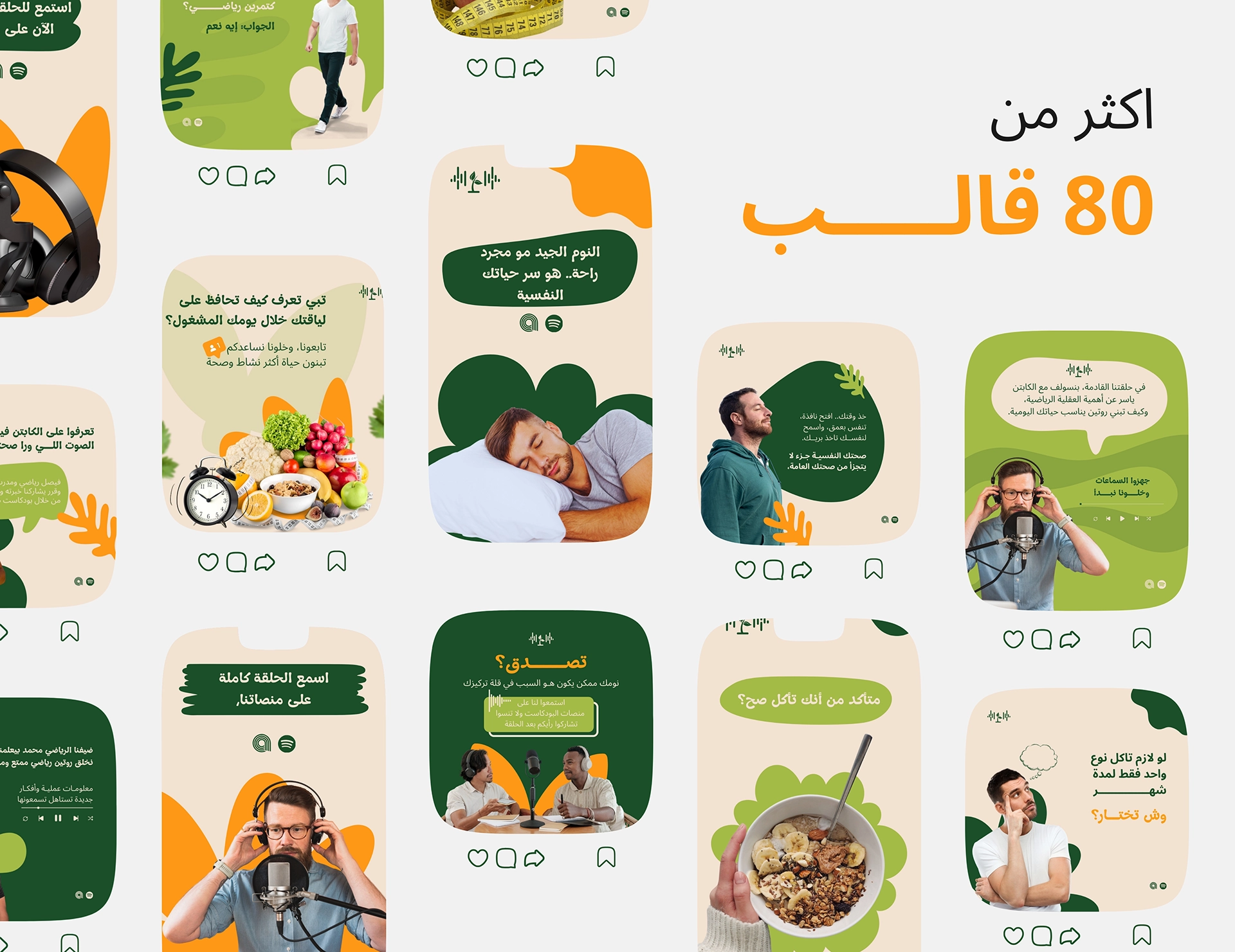 حزمة قوالب سوشيال ميديا جاهزة لبودكاست عن الحياة الصحية والرياضة،
