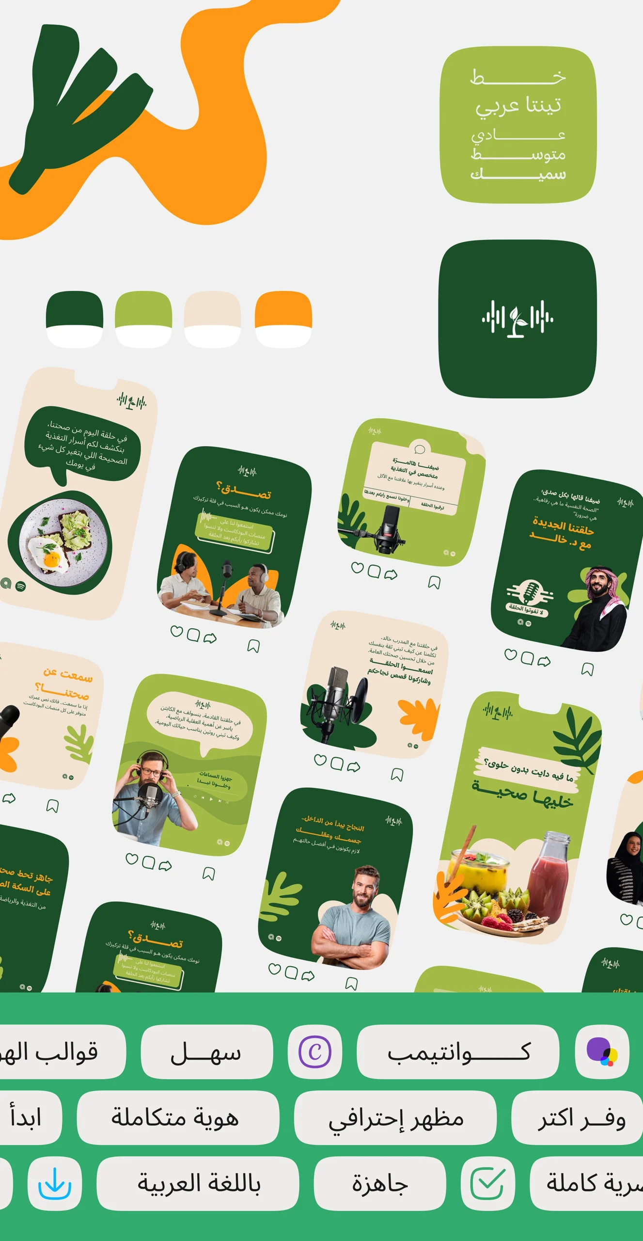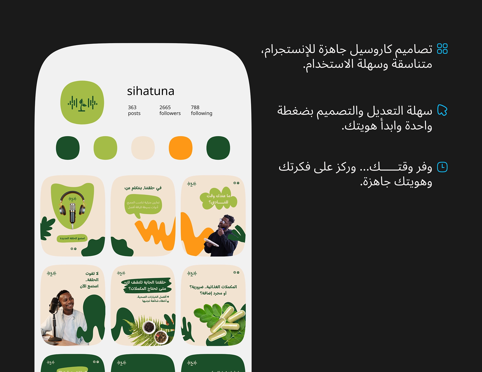 مصممة علشان تساعدك تعرض حلقاتك، مواضيعك، واقتباساتك الصحية بأسلوب جذاب واحترافي بدون مصمم أو وقت ضايع.
