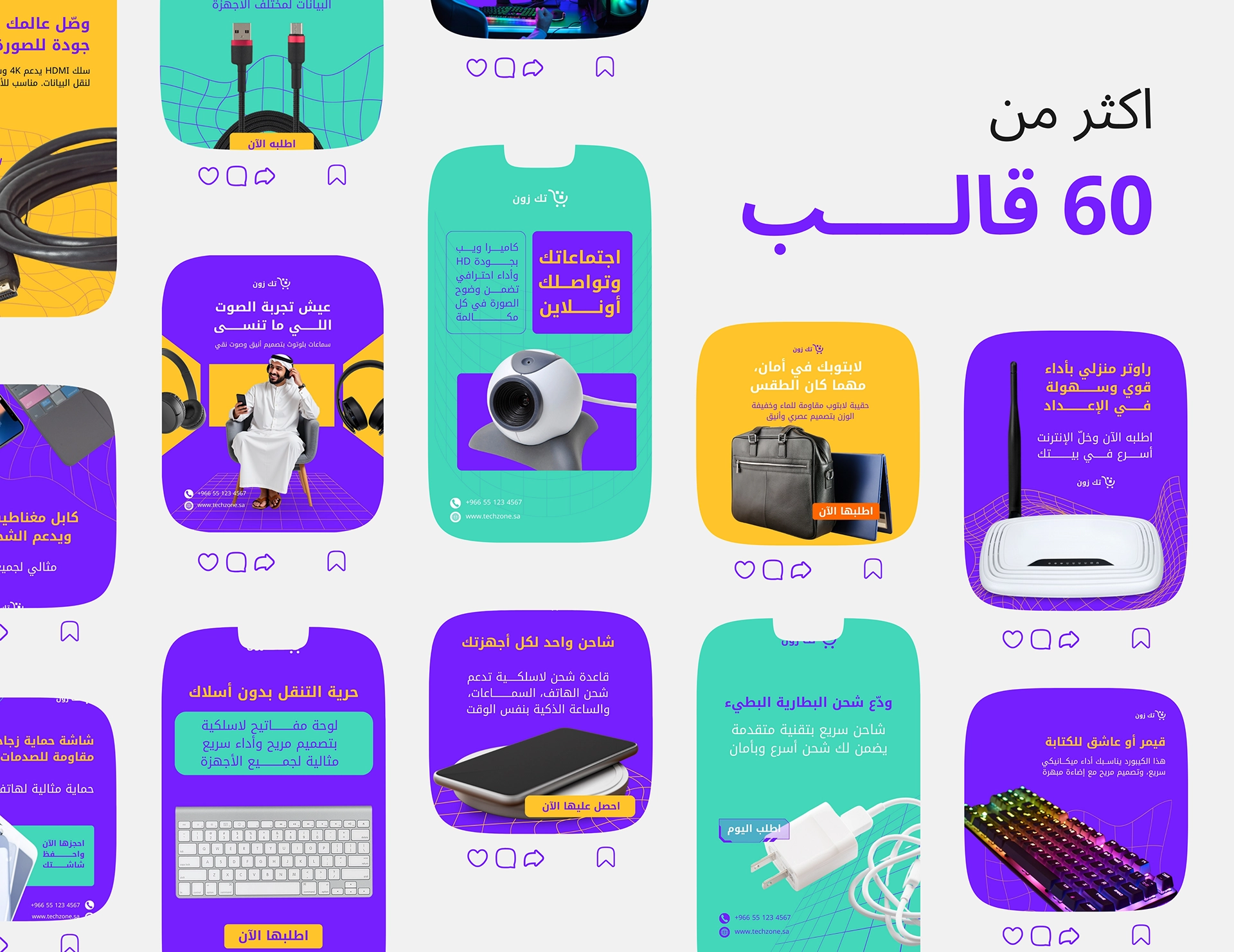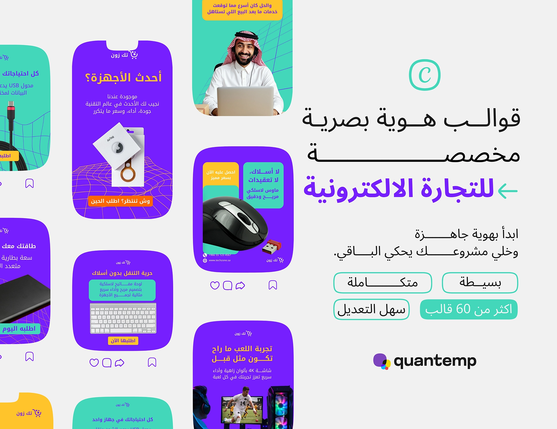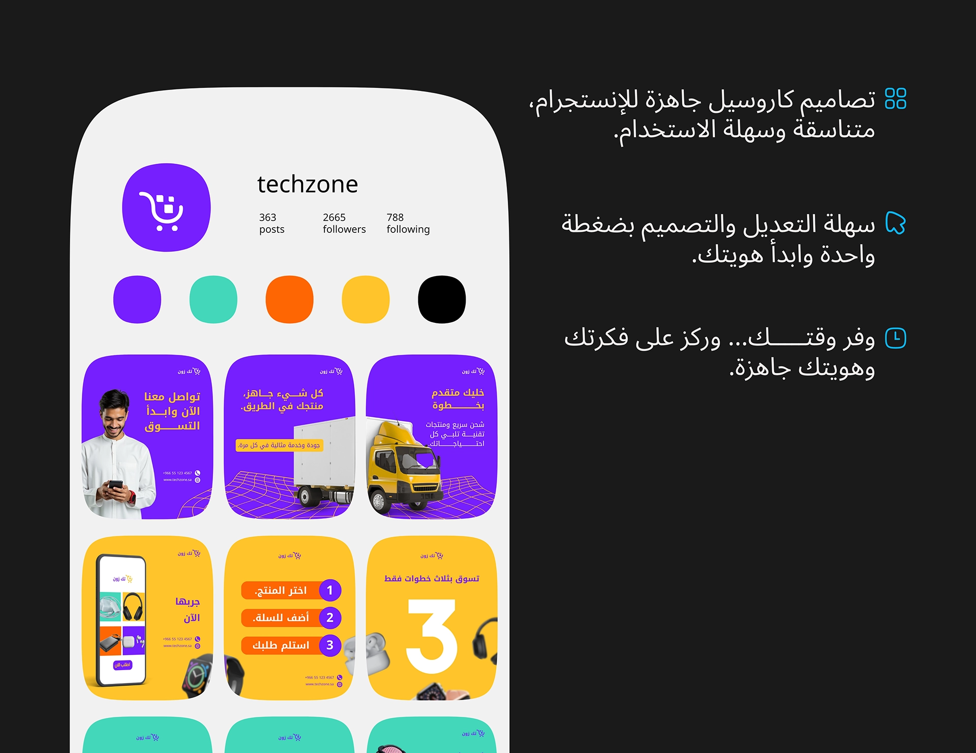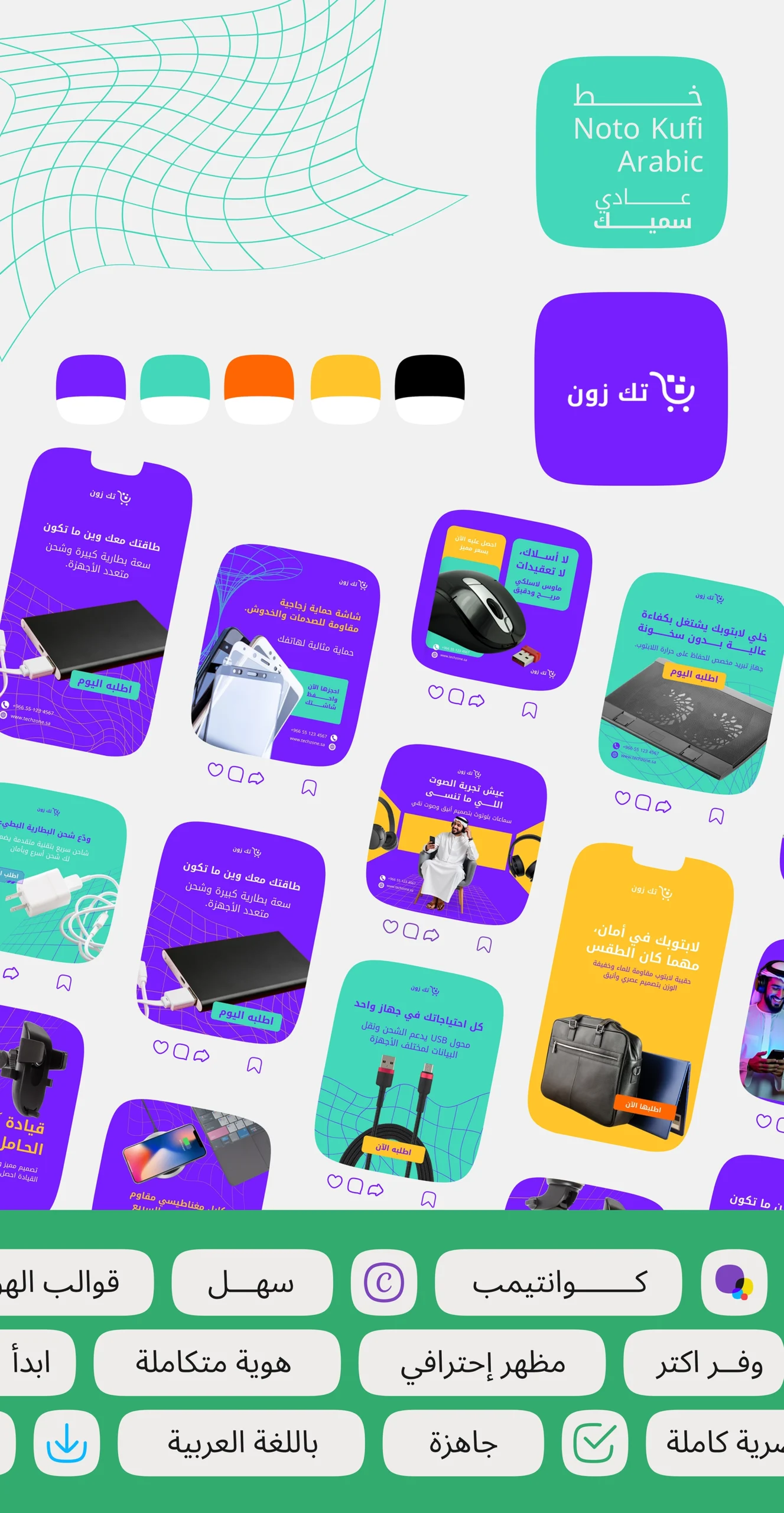 حزمة تصميمات جاهزة للسوشيال ميديا معمولة مخصوص لمشاريع التجارة الإلكترونية والبيع الأونلاين، تساعدك تعرض منتجاتك بشكل ثابت واحترافي من غير مصمم ولا وقت ضايع.