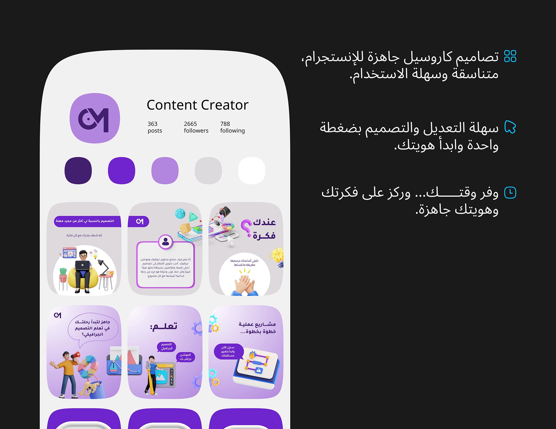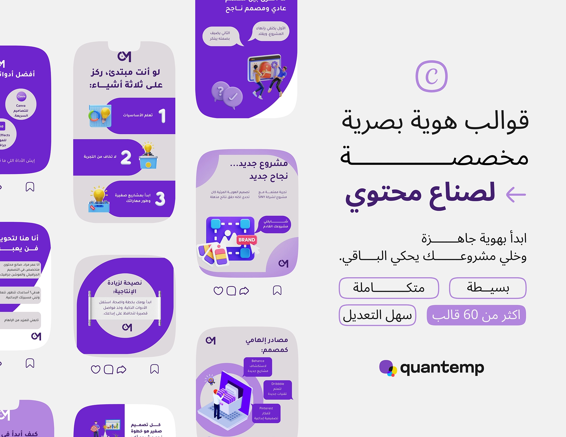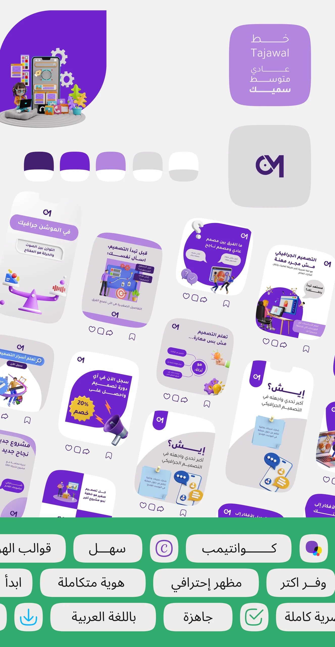 حزمة تصميمات جاهزة للسوشيال ميديا معمولة مخصوص لصنّاع المحتوى والمؤثرين، تساعدك تحافظ على هوية ثابتة واحترافية لحسابك بدون مصمم أو وقت ضايع.